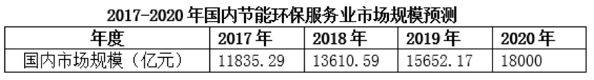 节能环保服务业作为生产性服务业,主要涵盖了节能服务业、环境与污染治理服务以及回收利用服务。2016年,节能服务产业作为战略性新兴产业,继续发展壮大,合同能源管理、环境污染第三方治理等服务模式得到广泛应用,一批生产制造型企业快速向生产服务型企业转变,表现出了创新、高技术和高附加值等特点。据EMCA统计,截止到2016年底,从事节能服务业的企业数量达到5816家,行业从业人员65.2万人,节能服务产业总值3567.42亿元,合同能源管理投资1073.55亿元,形成年节能能力3578.50万吨标准煤和年减排二氧化碳能力9590.38万吨。预计到2020年,节能服务产业总产值将达到6000亿元。此外,根据《中国制造2025》绿色制造工程,预计到2020年,再制造产业规模达到2000亿元,节能产业产值达到1.7万亿元,节能环保服务业产值达到1.8万亿元,其中2017-2020年年均增长率将达到15%。