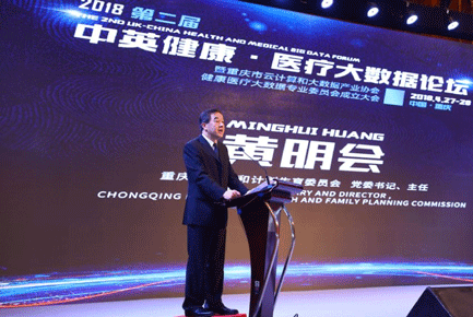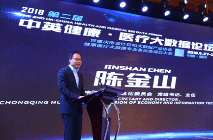 重庆市经济和信息化委员会党组书记、主任陈金山、重庆市卫生和计划生育委员会党委书记、主任黄明会、国家卫生健康委员会规划与信息司副司长刘文先、英国驻重庆总领事馆总领事艾佩诗等领导和嘉宾出席活动并致辞。
