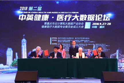 会上,还举行了重庆市云计算和大数据产业协会健康医疗大数据专委会和英国华人医疗信息协会、重庆大学软件学院和威尔士数字医疗研究院签约仪式。