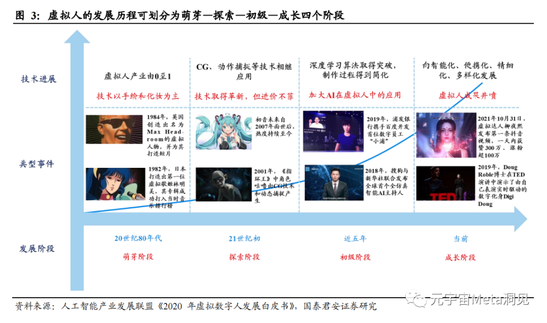 2)探索:随着CG、动捕等技术问世,虚拟人在影视娱乐领域的应用进一步拓宽。