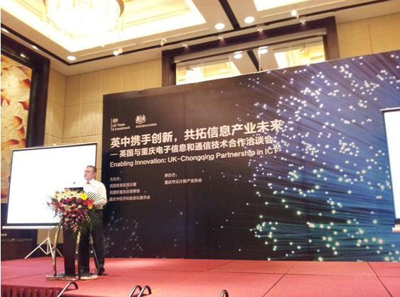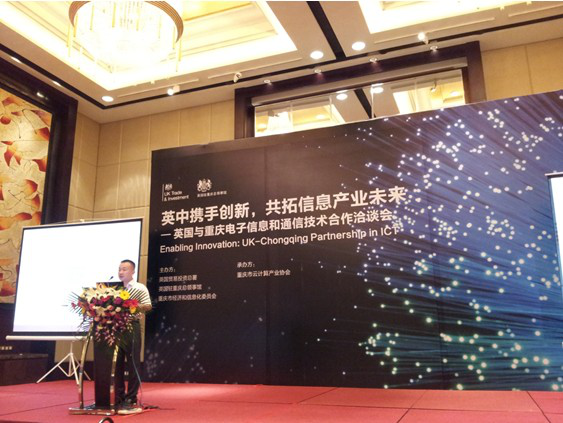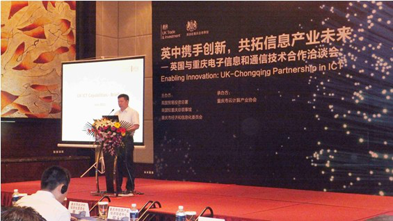 6月6日,英国与重庆电子信息和通信技术合作洽谈会在重庆丽笙世嘉酒店顺利召开。会议由重庆市经济和信息化委员会、英国贸易投资总署和英国驻重庆总领事馆联合主办,由重庆市云计算产业协会承办。市经信委总工程师赵刚、市经信委软件处处长居琰、英国贸易投资总署技术战略合作项目组组长约翰•戴维斯先生以及英国驻重庆总领事馆商务领事梅隆先生出席了本次会议。会议还邀请到Reading Room、Positive Marketing、Antix Labs、ARM、BT等近十家英国企业和十余家重庆本地电子信息产业企业,包括中国电信重庆分公司、中国联通重庆分公司、猪八戒网络有限公司、正大软件等。